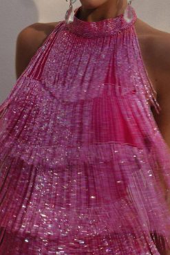 Solid Color Romantic Tiered Tassel Mini Dress