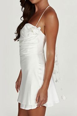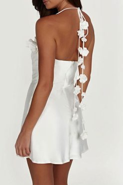 3D Flower Decor Elegant Halter Collar Mini Dress