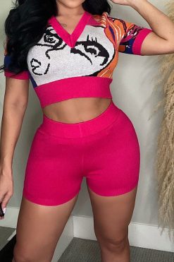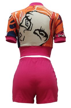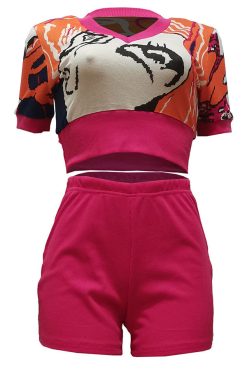 Abstract Print Patchwork Casual Pant Suit