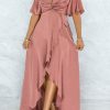 Gradient Stylish High Split Knitted Skirt Suit