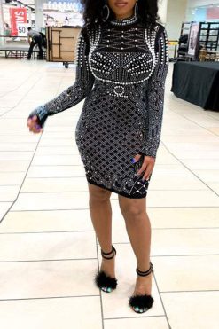 Rhinestone & Faux Pearl Luxe Half Collar Mini Dress