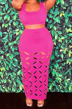Solid Color Hot Rhombus Hollow-Out Dress Suit