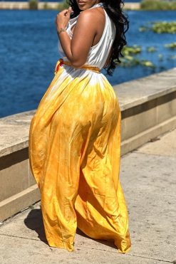 Tie Dye Pretty Belted Wide Leg Jumpsuit