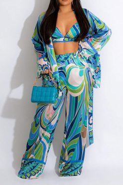 Tribal Floral Print Retro Pant Suit Three Pieces
